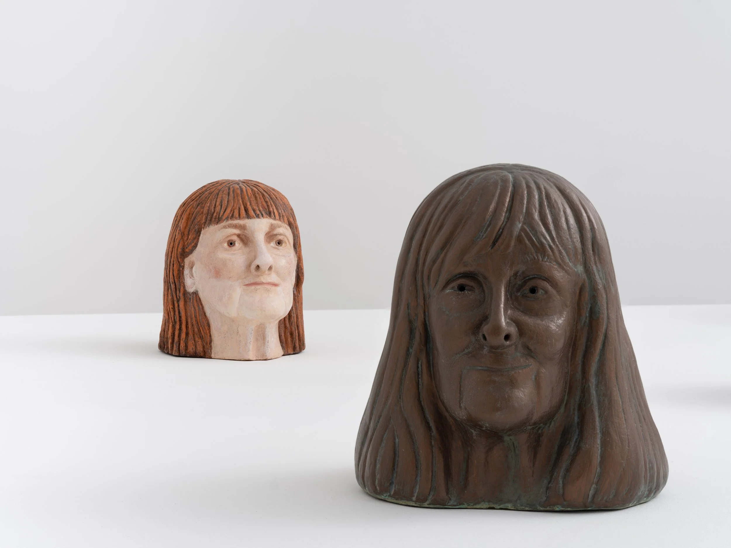The ceramic heads here, made over twelve months, are arranged on a single platform decontextualized from the body and lacking a form (like a plinth) that might anchor them in space or relate them to historical sculptural solutions. Because they are disembodied, they have a macabre quality that recallsprops from a horror movie. Although all depict the same subject in the same format, each self-portrait differs significantly from the others. Together, they show the self as fluid—always shifting—and invite reflection on our own changing identities.